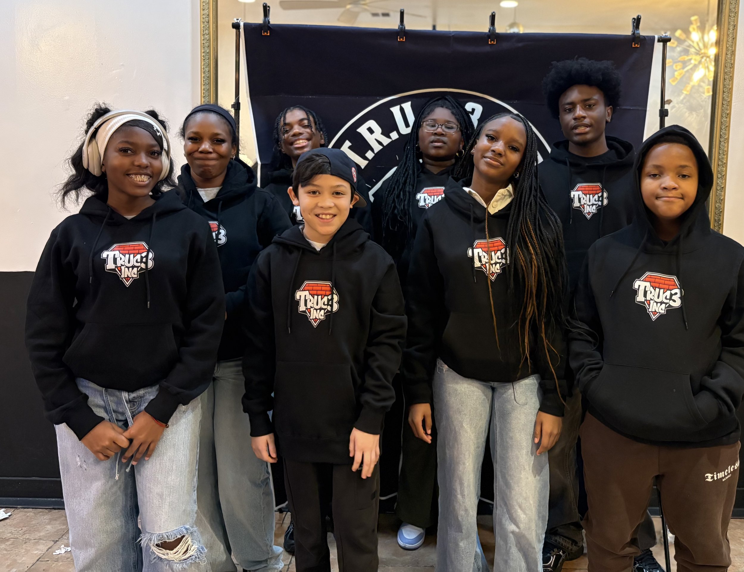 Young Kings and Young Queens stand together under T.R.U.C.3 Voices - learning, creating, and leading with respect, responsibility, and unity.